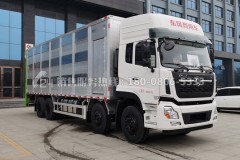 東風天龍前四后八鋁合金畜禽運輸車:1、廂體材料配件:鋁合金、風扇、百葉窗、飲水嘴、噴淋頭、凈水管道、污水管道、氣體混合倉、水簾百葉