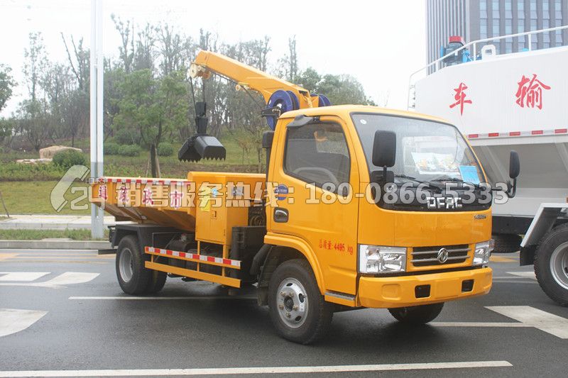 4.挖取深度大:吊臂360度旋轉(zhuǎn)角度,抓斗最大深度12米,抓斗工作范圍0.7--1.2米,容積0.075立方米;100-300升水箱 ,車(chē)廂容積3-4立方,可加高墻板及液壓密封蓋。