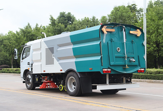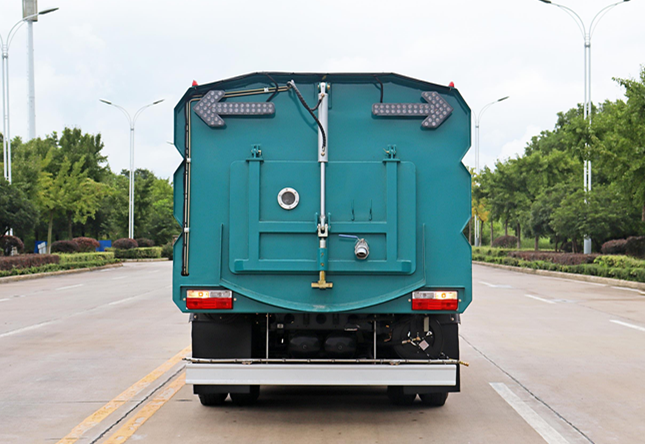 3、結(jié)構(gòu)先進(jìn):清水箱充分利用了車載空間,容積大。垃圾箱采用傾翻卸料,帶高液位報(bào)警保護(hù)裝置和自潔裝置。作業(yè)中垃圾箱內(nèi)污水液位達(dá)到規(guī)定高度時(shí),保護(hù)系統(tǒng)會(huì)自動(dòng)關(guān)停作業(yè)機(jī)構(gòu),可中途排水,排水后再作業(yè)直到垃圾箱裝滿垃圾。自潔裝置可在垃圾箱卸料時(shí)幫助卸料,清洗垃圾箱內(nèi)部。左右立掃為單掃盤(pán),減少了掃刷數(shù)量和掃刷消耗量,能降低使用成本。左右立掃分開(kāi)控制,可實(shí)現(xiàn)左掃、右掃和全掃等不同作業(yè)模式。寬吸嘴能方便調(diào)整和保證吸嘴與路面間的合理間隙。吸嘴內(nèi)高有噴水桿,盡可能多地將高壓洗滌噴嘴布置在吸嘴內(nèi)部,不但清洗效果好,還能最大限度減少高壓水氣流沖起污物產(chǎn)生的二次污染。左右噴水桿安裝在吸嘴上,隨吸嘴升降,結(jié)構(gòu)簡(jiǎn)單緊湊,保證噴水桿的離地高度固定不變,達(dá)到最佳清洗效果。車子前端可加裝能左右上下擺動(dòng)的高壓定點(diǎn)沖嘴,可對(duì)局部頑漬進(jìn)行定點(diǎn)沖洗。開(kāi)式液壓系統(tǒng)驅(qū)動(dòng)左右立掃升降、左右掃肋旋轉(zhuǎn)、吸嘴升降、垃圾箱后門(mén)開(kāi)閉、垃圾箱傾翻復(fù)位等機(jī)械動(dòng)作。底盤(pán)變速箱側(cè)取力器驅(qū)動(dòng)低壓水泵,實(shí)現(xiàn)灑水車的低壓沖洗功能。