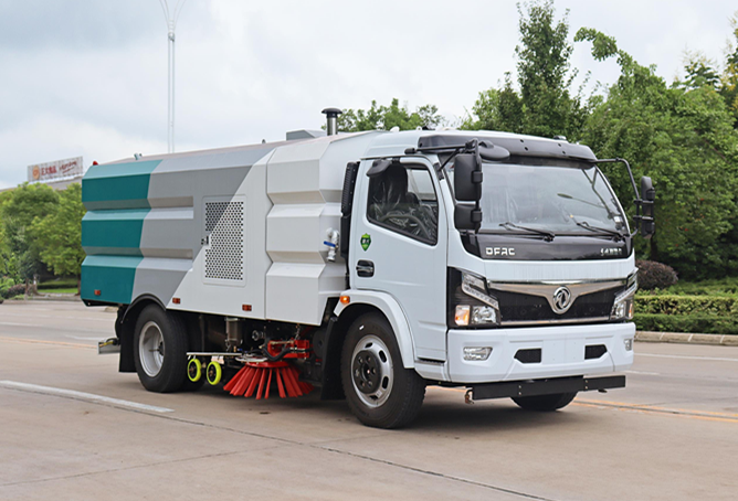 底盤(pán)通過(guò)加裝副發(fā)動(dòng)機(jī)、風(fēng)機(jī)、高壓水泵、清水箱、垃圾箱、左右立掃、帶噴水桿的寬吸嘴、低壓沖洗系統(tǒng)、掃盤(pán)降塵系統(tǒng)、液壓系統(tǒng)、專用裝置電控系統(tǒng)和副車架等改裝而成。
