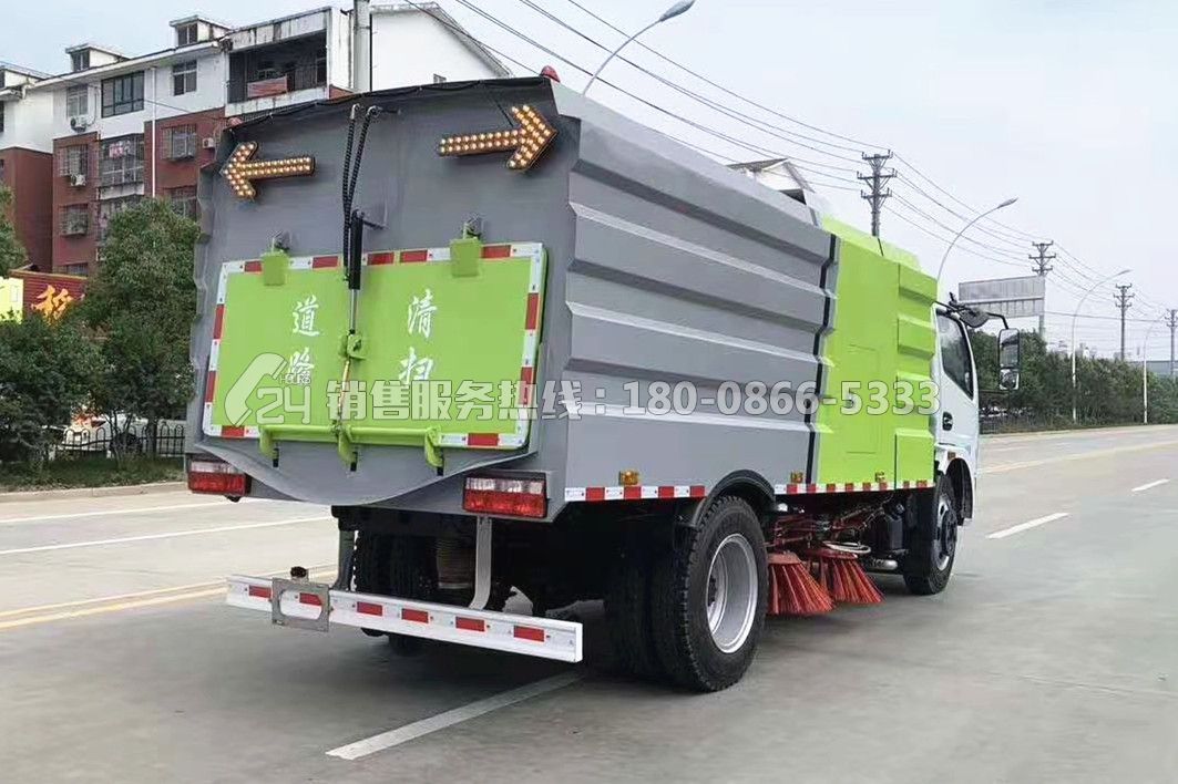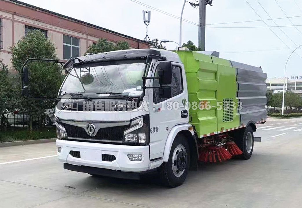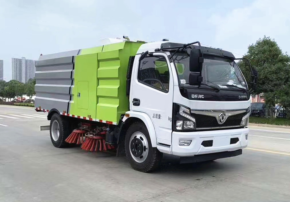 4、東風(fēng)8噸掃路車采用吸掃結(jié)合的方式收集垃圾,濕式除塵、電液控制,液壓傾翻卸料的作業(yè)方式對路面進行清掃作業(yè)。