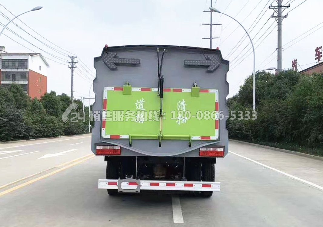 3、經(jīng)過優(yōu)化后的垃圾箱容積可達到6立方,能持續(xù)作業(yè)5個小時以上,同時配有2立方清水箱,可以在工作時有效抑制揚塵,提高工作效率。
