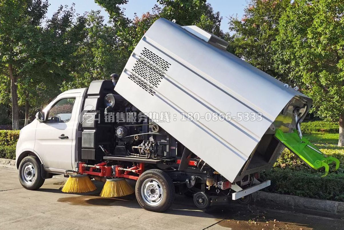 塵箱:1.5立方米,水箱:0.5立方米;中置4掃盤、后置吸盤、三洋擺線馬達(dá)、云內(nèi)副發(fā)動(dòng)機(jī)、施耐德控制開關(guān)、海普瑞斯電磁閥組、無級變速自動(dòng)離合器、免維護(hù)離心式風(fēng)機(jī)、不銹鋼垃圾箱、北極星電子水泵、垃圾箱舉升自卸、尾部LED箭頭燈、手動(dòng)泵應(yīng)急系統(tǒng)。