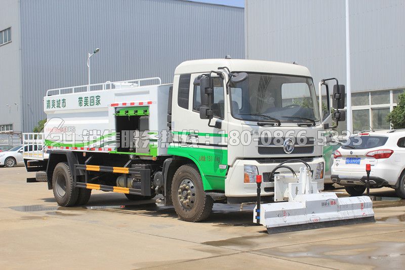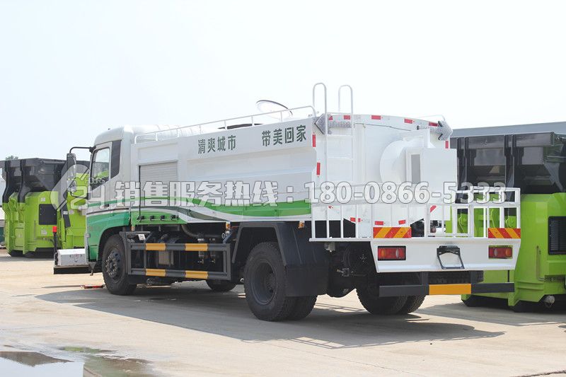 東風(fēng)天錦路面高壓清洗車罐體采用優(yōu)質(zhì)武鋼碳鋼板5mm厚,罐體容積8.0方,江鈴副發(fā)動(dòng)機(jī);德國高壓水泵(前置道路清洗支架/前沖/中置高壓清洗槍)/后高低2套噴霧(21+16不銹鋼噴嘴)20米沖洗水槍);威龍低壓泵(前沖/后灑/綠化高炮);法國空間開關(guān);尾部裝LDE箭頭燈。清洗寬度3.5米;清洗壓力10MPa;高壓沖洗高度大于等于21米。