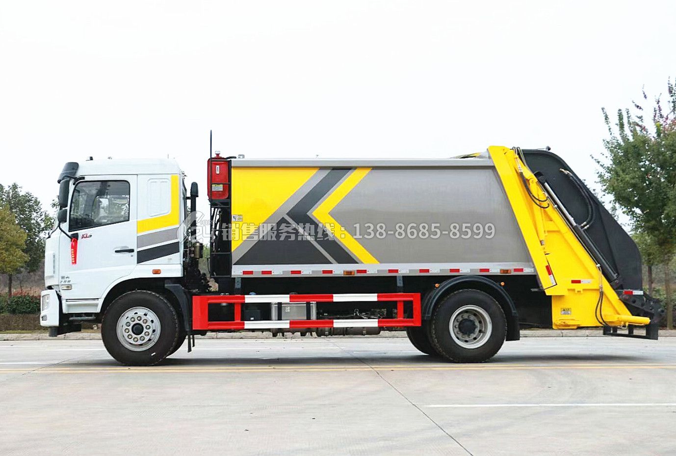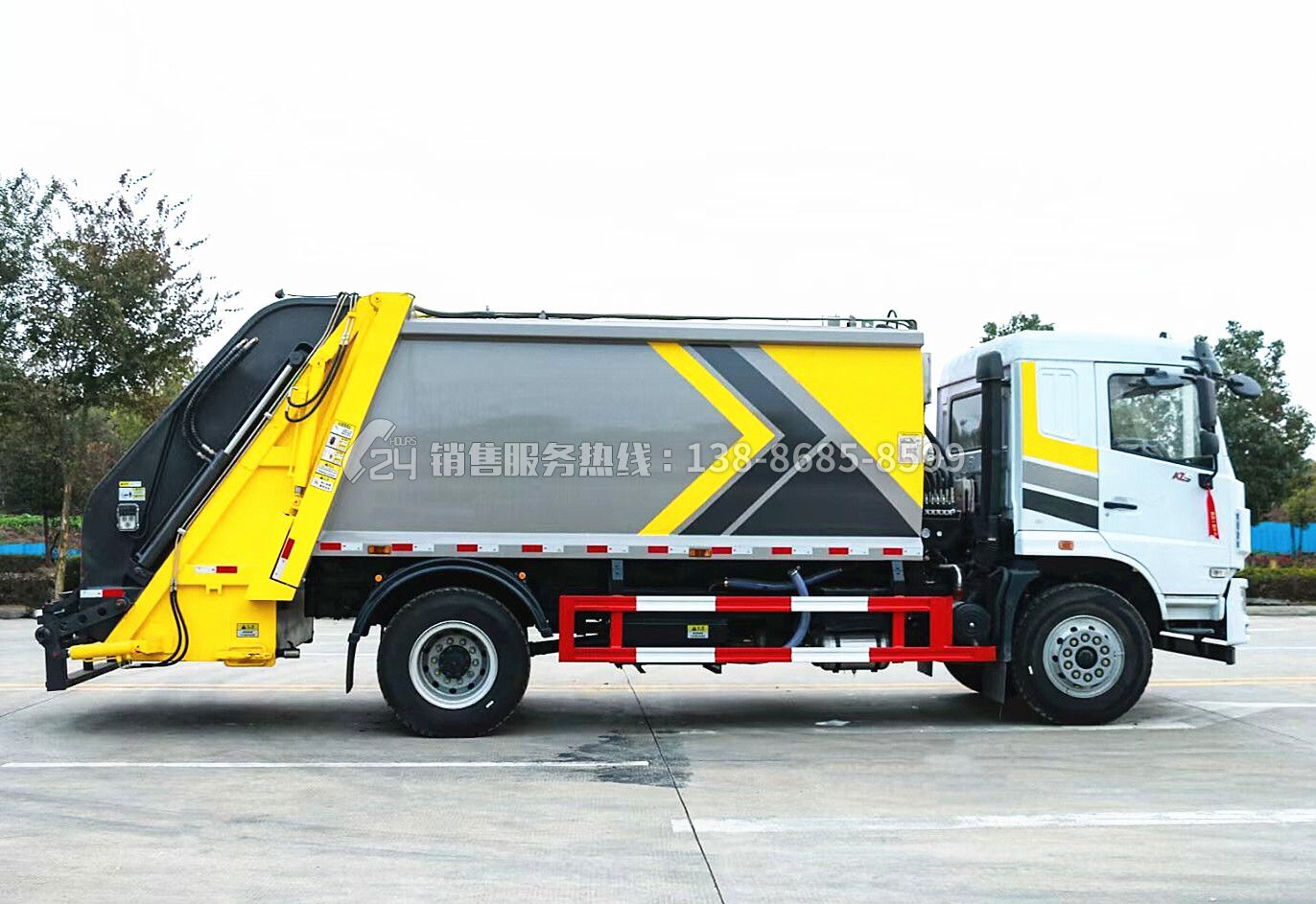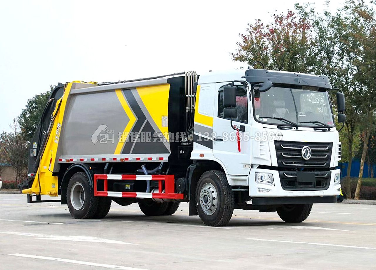 東風華神壓縮式垃圾車,由廂體、裝料機構(gòu)、壓縮機構(gòu)、卸料機構(gòu)、油泵、油缸、控制閥等組成的液壓機構(gòu)組成。廂體材料為優(yōu)質(zhì)碳鋼,厚度(單位:mm):邊4底5,廂體容積:12.0m3 ,裝料機構(gòu)由支架,連桿機構(gòu),凸輪,掛鉤等組成。在油缸作用下,將垃圾桶內(nèi)的垃圾自動翻轉(zhuǎn)倒入料斗內(nèi)。
