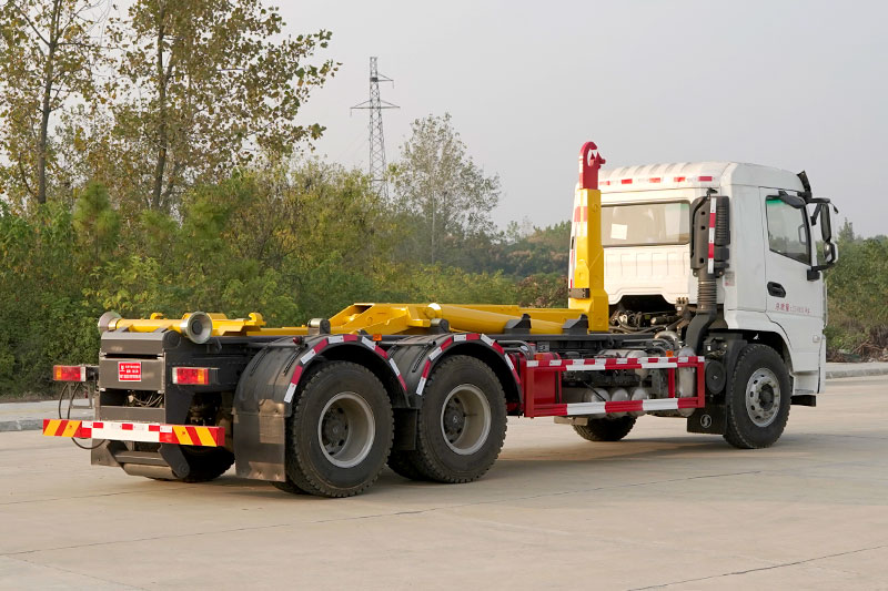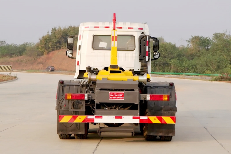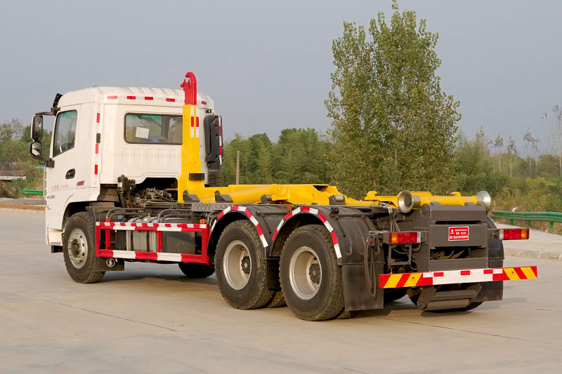 陜汽軒德后雙橋鉤臂式垃圾車,標配可配合14-18方垃圾箱使用,也可配合同級別移動壓縮式垃圾箱使用,勾臂采用高強度優(yōu)質(zhì)錳鋼,副車架采用16號低合金槽鋼、20號方管與8mm、5mm、4mm、16Mn鋼板焊接而成,翻轉架與活動勾臂垃圾車動作設計合理可靠,實現(xiàn)拉箱、鎖緊、放箱和自卸操作簡單方便,控制方式為駕駛室智能控制,也可根據(jù)用戶需要選裝駕駛室外傳統(tǒng)操作桿進行控制。