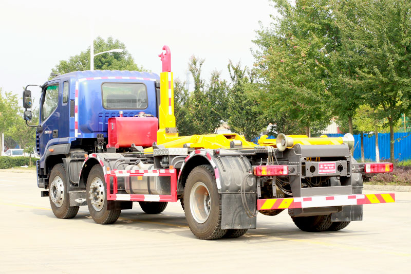 福田時(shí)代鉤臂式垃圾車,標(biāo)配可配合14-18方垃圾箱使用,也可配合同級別移動壓縮式垃圾箱使用,勾臂采用高強(qiáng)度優(yōu)質(zhì)錳鋼,副車架采用16號低合金槽鋼、20號方管與8mm、5mm、4mm、16Mn鋼板焊接而成,翻轉(zhuǎn)架與活動勾臂垃圾車動作設(shè)計(jì)合理可靠,實(shí)現(xiàn)拉箱、鎖緊、放箱和自卸操作簡單方便,控制方式為駕駛室智能控制,也可根據(jù)用戶需要選裝駕駛室外傳統(tǒng)操作桿進(jìn)行控制。