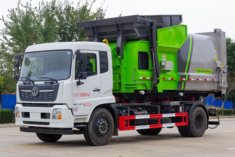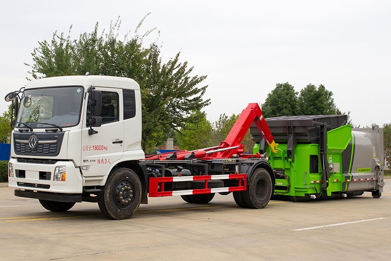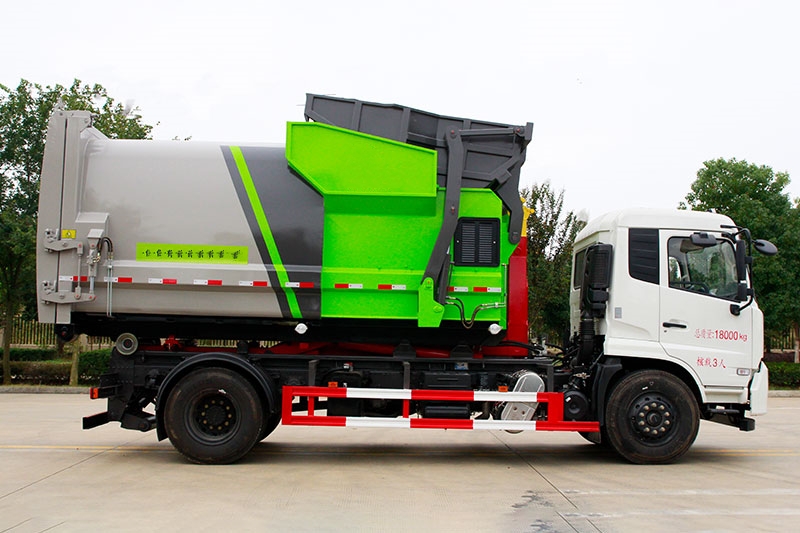東風(fēng)天錦鉤臂式垃圾車(chē),標(biāo)配可配合12-14方垃圾箱使用,也可配合同級(jí)別移動(dòng)壓縮式垃圾箱使用,勾臂采用高強(qiáng)度優(yōu)質(zhì)錳鋼,副車(chē)架采用16號(hào)低合金槽鋼、20號(hào)方管與8mm、5mm、4mm、16Mn鋼板焊接而成,翻轉(zhuǎn)架與活動(dòng)勾臂垃圾車(chē)動(dòng)作設(shè)計(jì)合理可靠,實(shí)現(xiàn)拉箱、鎖緊、放箱和自卸操作簡(jiǎn)單方便,控制方式為駕駛室智能控制,也可根據(jù)用戶需要選裝駕駛室外傳統(tǒng)操作桿進(jìn)行控制。