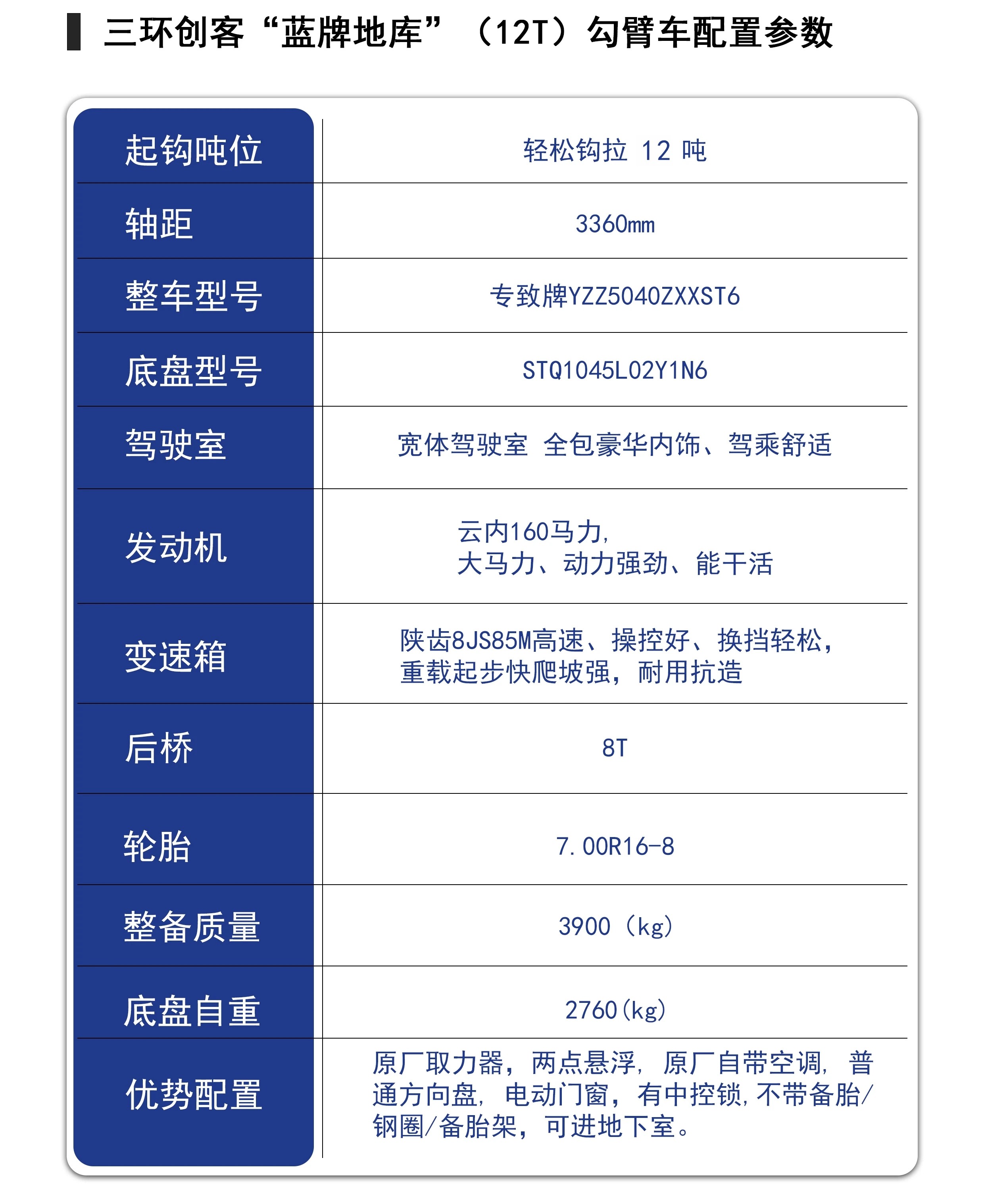 三環(huán)創(chuàng)客藍(lán)牌(地庫)勾臂專用配置:
