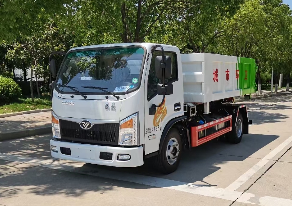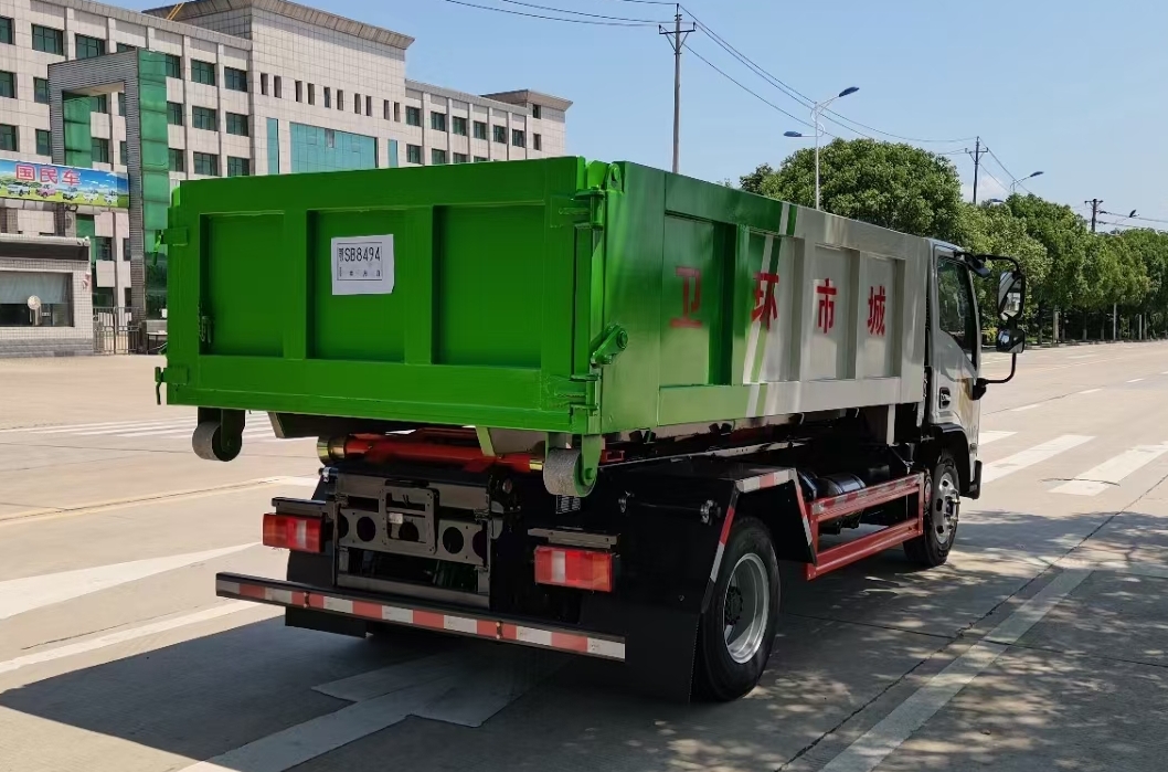 重汽豪曼藍(lán)牌(地庫(kù))勾臂垃圾車(chē) 7方建筑垃圾箱