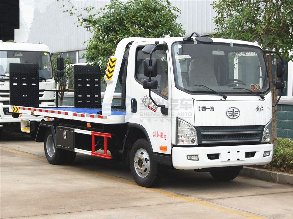 藍(lán)牌解放VN一拖二清障車配置:虎VN單排駕駛室,濰柴110馬力, WP2 3Q110E50,5檔變速箱(5T32),3300軸距,7 00R16鋼絲胎,130沖焊橋,70L塑料油箱,國產(chǎn)ABS,定速巡航,斷氣剎。