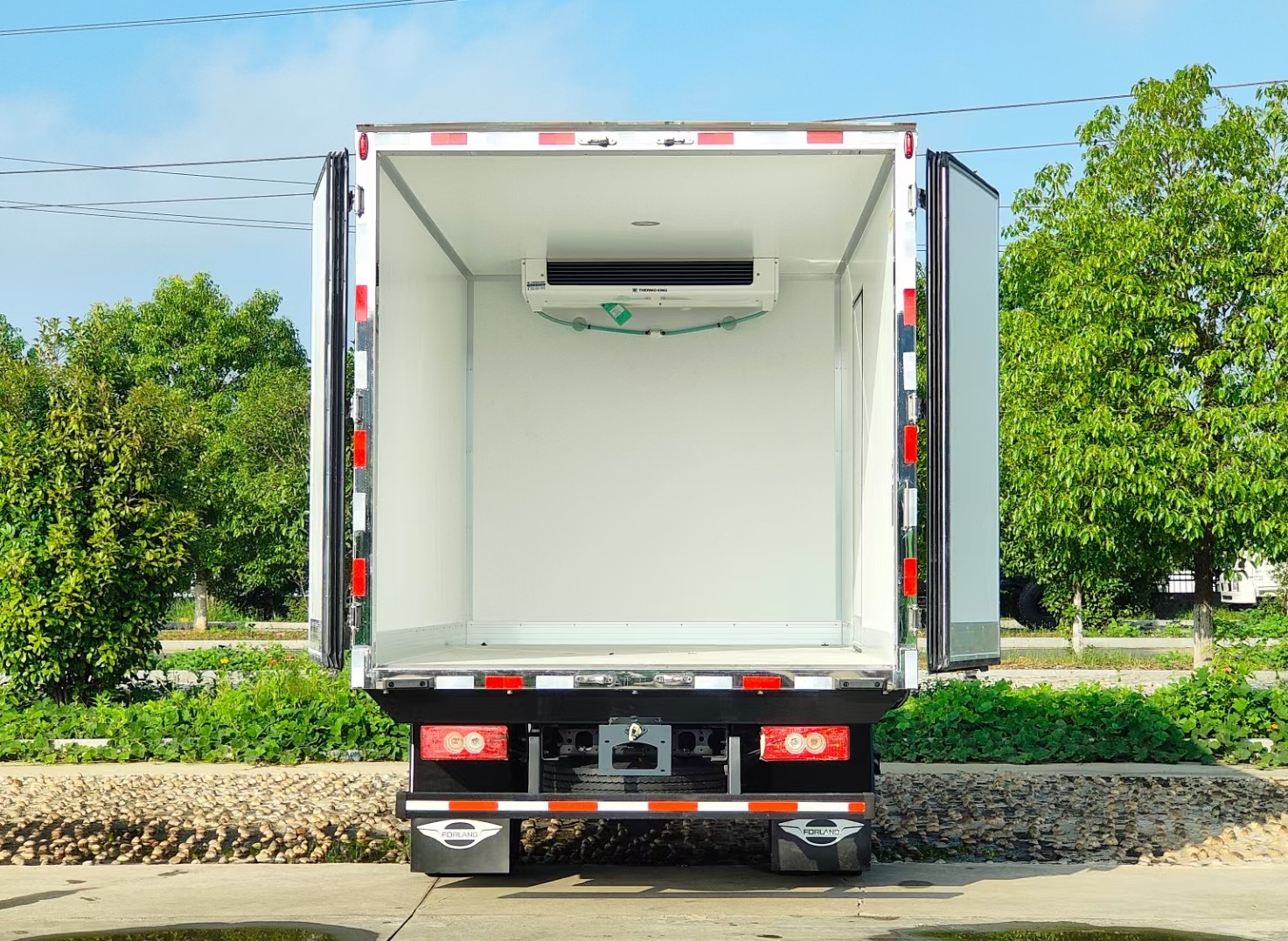 液壓尾板,通風(fēng)槽,頂部鋁合金導(dǎo)軌,不銹鋼肉鉤,380V備用電源。廂內(nèi)可加裝:如貨物固定裝置,貨物懸掛裝置,廂內(nèi)貨架,保溫門簾等。溫濕記錄儀:隨車打印、高低溫報警,加溫器等。