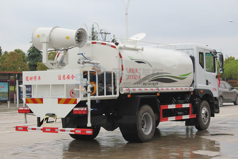 這輛車與其它灑水車最大的區(qū)別要數(shù)他的噴霧裝置,在原有的灑水功能上,加裝了噴霧大炮,科馬動力發(fā)動機(jī),額定電壓在220v/380v,額定頻率50Hz,額定輸出功率為7.0kW,最大輸出功率為7.5 kW,功率因數(shù)是1.0,能有效的帶動噴霧炮進(jìn)行噴霧作業(yè)。炮筒式的設(shè)計非常高大上,洋氣又很使用,噴霧機(jī)主要是通過泵對水流進(jìn)行加壓,之后水流通過炮筒中的幾十個小型噴射口,在風(fēng)機(jī)高速旋轉(zhuǎn)產(chǎn)生的強(qiáng)大風(fēng)力中噴灑出去,產(chǎn)生成霧狀,形成了我們看到的噴霧,達(dá)到了霧灑的效果。遠(yuǎn)距離噴灑農(nóng)藥的話對治理園林害蟲起到很好的穿透性,保證了除蟲效果,也在無形中提高了工作效率。