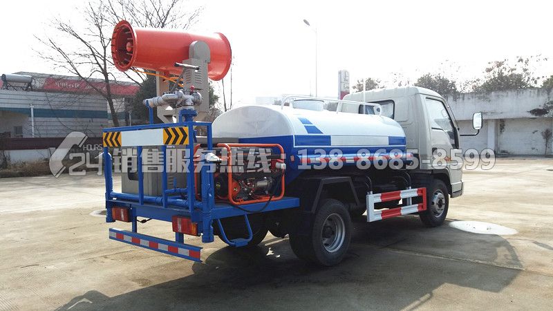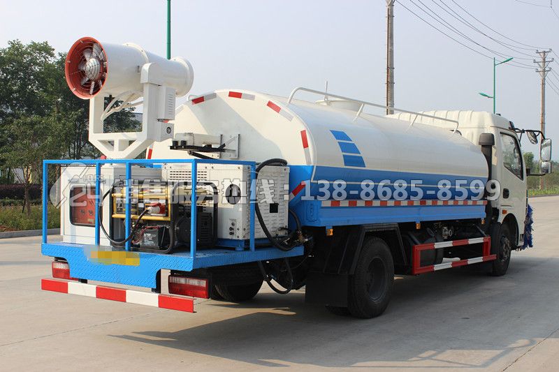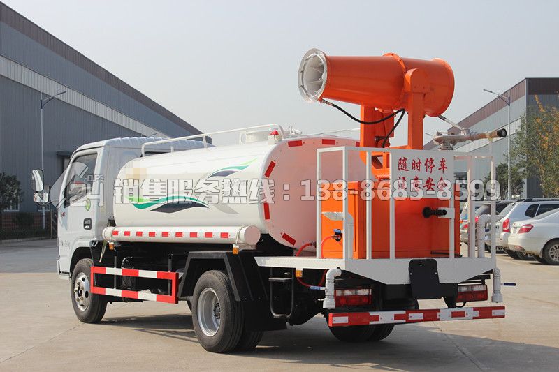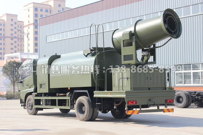 風(fēng)機(jī)安裝可360°調(diào)整的直流噴嘴兩只,沖洗寬度可達(dá)到25米以上,調(diào)整角度后,還可對(duì)道路面旁的高大樹木進(jìn)行沖洗;裝有兩只可噴淋后灑裝置,主要對(duì)垃圾場(chǎng)道路進(jìn)行保潔和壓塵,灑水寬度可達(dá)18米以上;高射的射程可達(dá)30米以上,可調(diào)節(jié)成霧狀或柱狀進(jìn)行噴灑。噴藥車也有灑水車功能可進(jìn)行城市環(huán)衛(wèi),綠化之用。