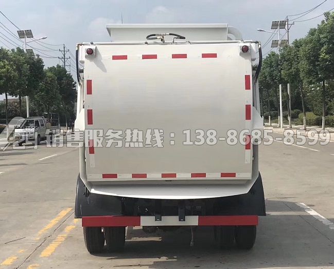 新式餐廚垃圾車尾部裙邊設計,卸料集中,不飛濺散落,不宜臟地臟人。