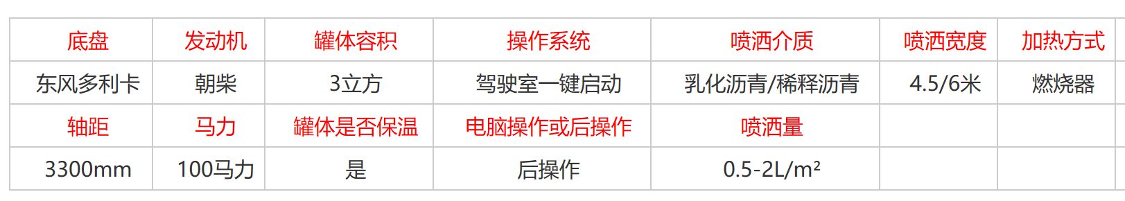 東風(fēng)雙排座3噸瀝青灑布車配置: