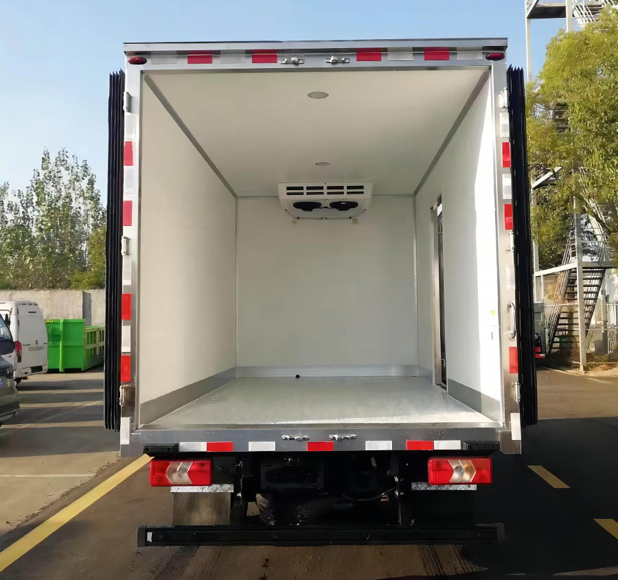 冷藏廂制作工藝:廂體采用新款加厚玻璃鋼;夾心為高密度保溫材料;全密封雙組合聚氨酯膠粘連/榫卯合廂;整體框架式骨架;廂體保溫板厚度為8cm;不銹鋼包角;鋁合金包邊(鋼制密封鉚釘加固);廂體內(nèi)部采用LED照明燈及廂體示寬燈;后門框?yàn)榧雍癫讳P鋼門飾;密封條為三元乙丙橡膠黑色密封條(新款5葉片帶鋁合金壓條)后門+側(cè)門為全包圍密封條;側(cè)門框?yàn)榻^熱PVC+加厚不銹鋼材質(zhì);廂體內(nèi)前端加裝2個排水孔;2個防撞膠塊;1個門把手;副梁整體為輕量化高強(qiáng)鋼;螺栓+U型栓+橡膠鋼絲墊皮+護(hù)網(wǎng)+擋泥板+3M反光膠板為標(biāo)準(zhǔn)件;其它標(biāo)配。