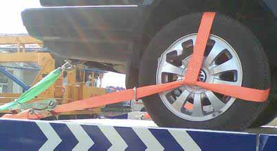 1、 一定要使用沒有破損的清障車捆綁帶。