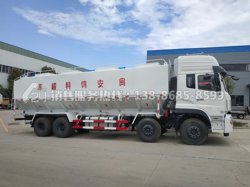 散裝飼料車容積有12方、20方、22方、28方、30方、40方等多個型號選擇,有電動絞龍卸料和液壓絞龍卸料,裝有380伏市電控制系統(tǒng),可以加裝車載發(fā)電機(jī)。常用常見可上戶的車型底盤有:東風(fēng)大多利卡,東風(fēng)天錦,陜汽軒德,東風(fēng)天錦XR,柳汽乘龍,解放J6,東風(fēng)天龍。根據(jù)容積選擇:單橋,小三軸,前四后八。