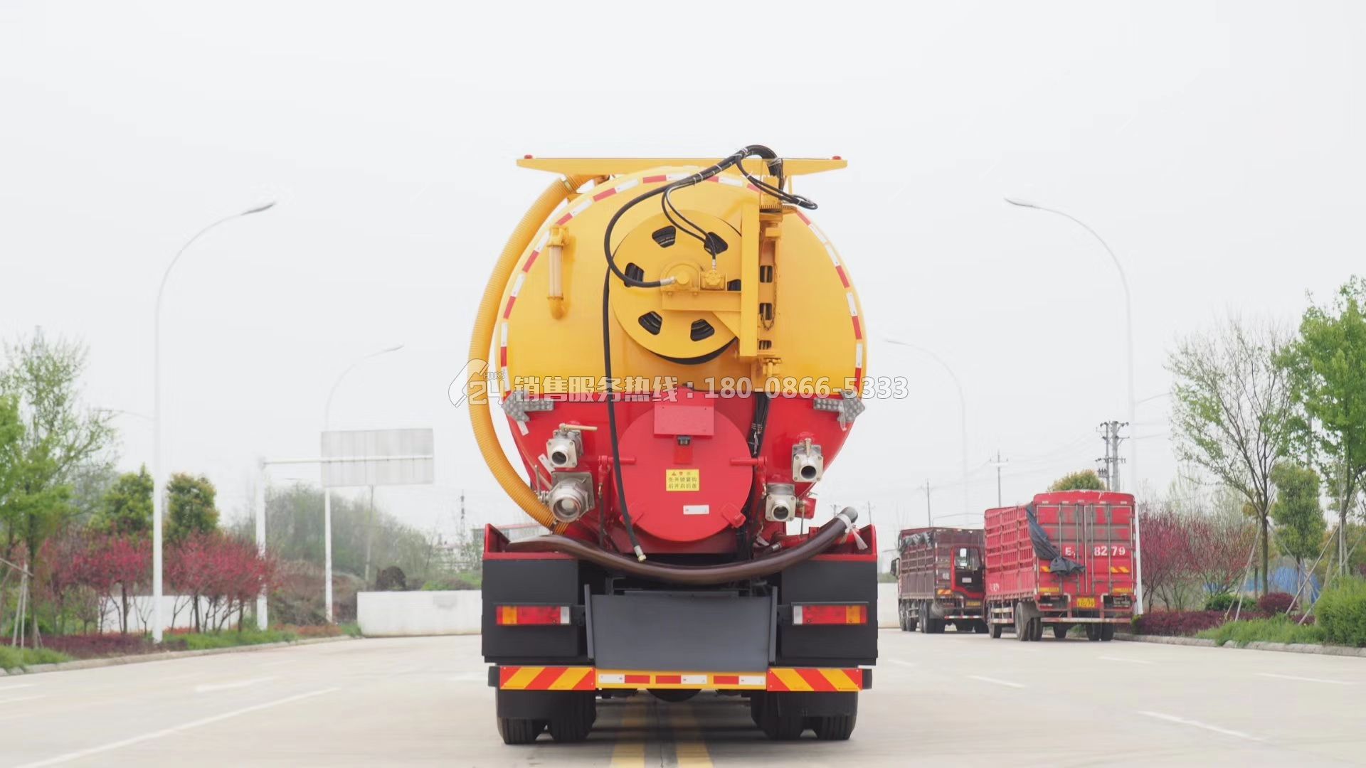 上裝配置可根據(jù)用戶需求適當(dāng)調(diào)整。 配置及功能介紹:本車裝配有400馬力副發(fā)動(dòng)機(jī),用于帶動(dòng)大流量水循環(huán)泵。高壓清洗疏通車罐體一體化設(shè)計(jì):清水罐與污水罐可根據(jù)客戶要求比例分罐,可設(shè)計(jì)成一體模式與分罐模式使用,增加客戶使用中的需求。水罐采用8MM優(yōu)質(zhì)國(guó)標(biāo)碳鋼板,內(nèi)部分倉(cāng)設(shè)計(jì),并做防腐處理。清水罐中的水經(jīng)過(guò)進(jìn)口高壓水泵增壓后,可對(duì)堵塞物進(jìn)行有效沖擊。污水罐采用真空吸污原理,可實(shí)現(xiàn)自吸自排功能。