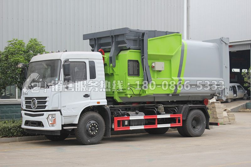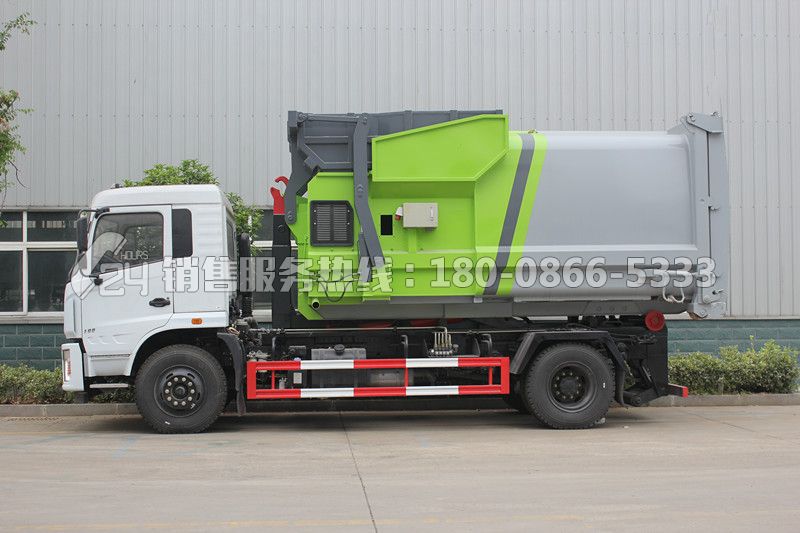 15-18方移動(dòng)式壓縮垃圾箱配套車(chē)型:東風(fēng)后雙橋鉤臂垃圾車(chē)