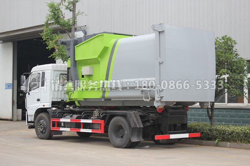 8-18方移動(dòng)壓縮垃圾車(chē)配置:勾臂垃圾車(chē)搭配8-18方移動(dòng)式垃圾壓縮箱使用,移動(dòng)式垃圾壓縮箱放置于各個(gè)需要的地點(diǎn),投資少占地少。
