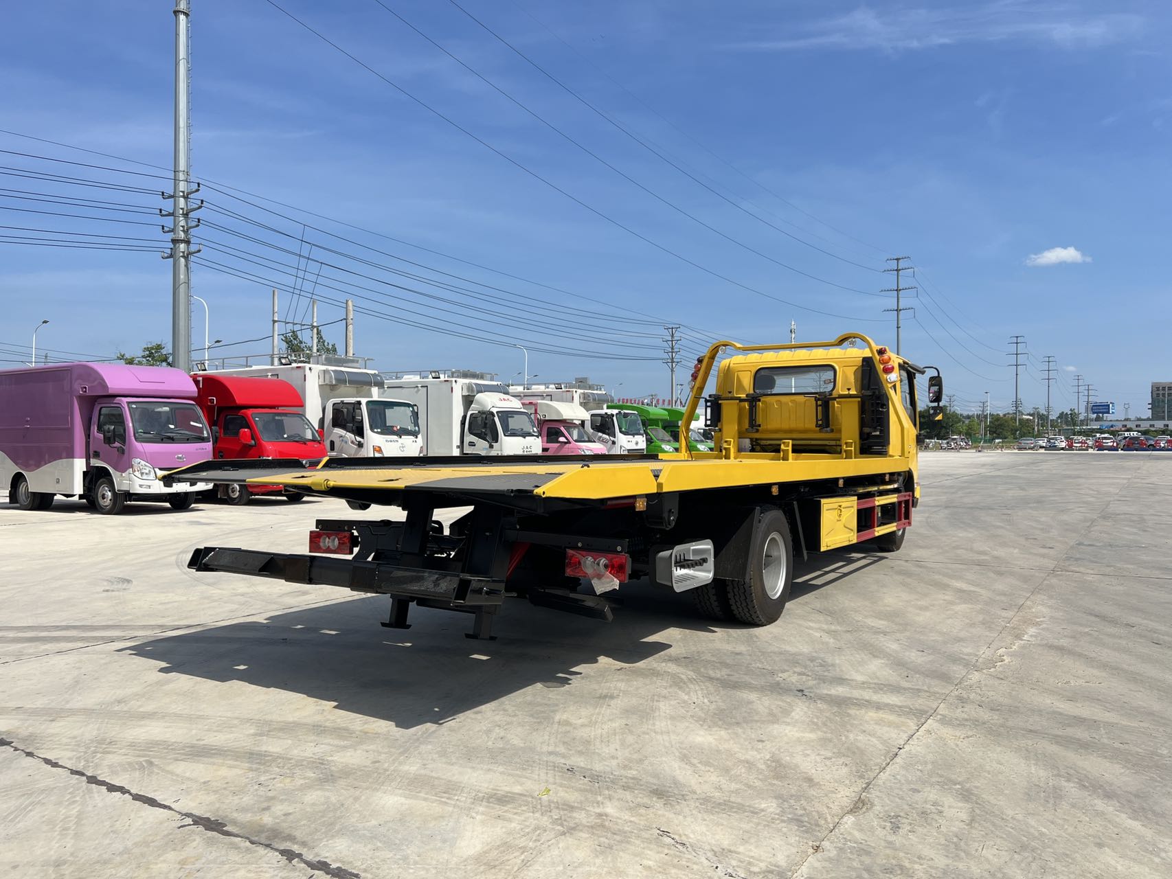 1.上裝拖板材料全選用優(yōu)質(zhì)武鋼材料,采用沖壓模一次性沖壓成型,,國內(nèi)首創(chuàng),板面更平整,強(qiáng)度更高,更耐用,組合件冷沖壓成型,其強(qiáng)度,剛度及平整度遠(yuǎn)高于一般的折彎成型的花紋平鋪式結(jié)構(gòu)面板。平板結(jié)構(gòu)專業(yè)化,模塊化生產(chǎn),各個(gè)總成精密制造,互換性強(qiáng)。國內(nèi)唯一一家清障車結(jié)構(gòu)件用陰極電泳處理,有效保障其防腐性能。