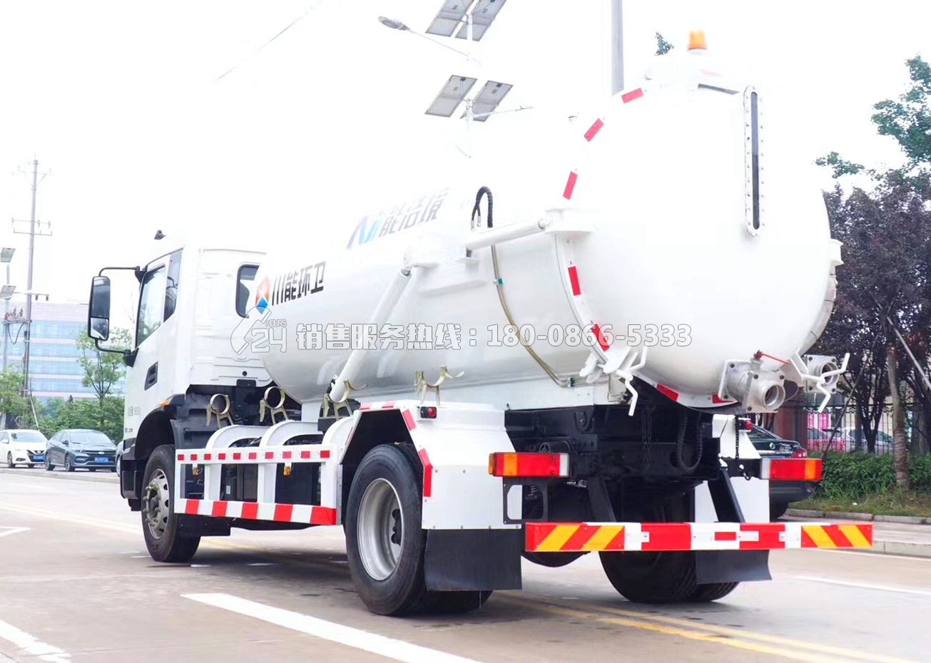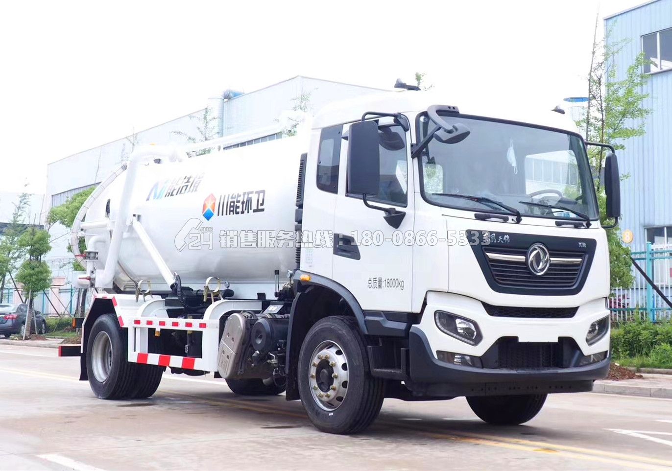 東風(fēng)天錦KR吸污車罐體形狀為圓柱形,采用武鋼8mm厚優(yōu)質(zhì)碳鋼鋼板,罐體前部帶吸污窗,洗手裝置,舉升裝置,吸污管8米一根,罐體多種顏色選擇,其余按廠內(nèi)標(biāo)準(zhǔn)配置制作。隨車配置大功率真空吸污泵和優(yōu)質(zhì)液壓系統(tǒng),罐體封頭一次壓鑄成型、罐體可后開、雙頂自卸。罐內(nèi)污物可通過后蓋直接傾倒,具有真空度高(比吸糞車的吸力更大)、噸位大、效率高、用途更廣泛的特點。(垂直吸程:≥8 m,工作壓力:8500Pa,理論抽速:120L/S,軸功功率:≤13kw,進排氣口徑:50mm,抽滿罐時間:<5 min,排滿罐時間:<4min。吸污車采用大功率真空泵,一次壓鑄成型的封頭-,加厚的抗壓罐體,雙頂液壓系統(tǒng),是比吸糞車功能更強大的車型。