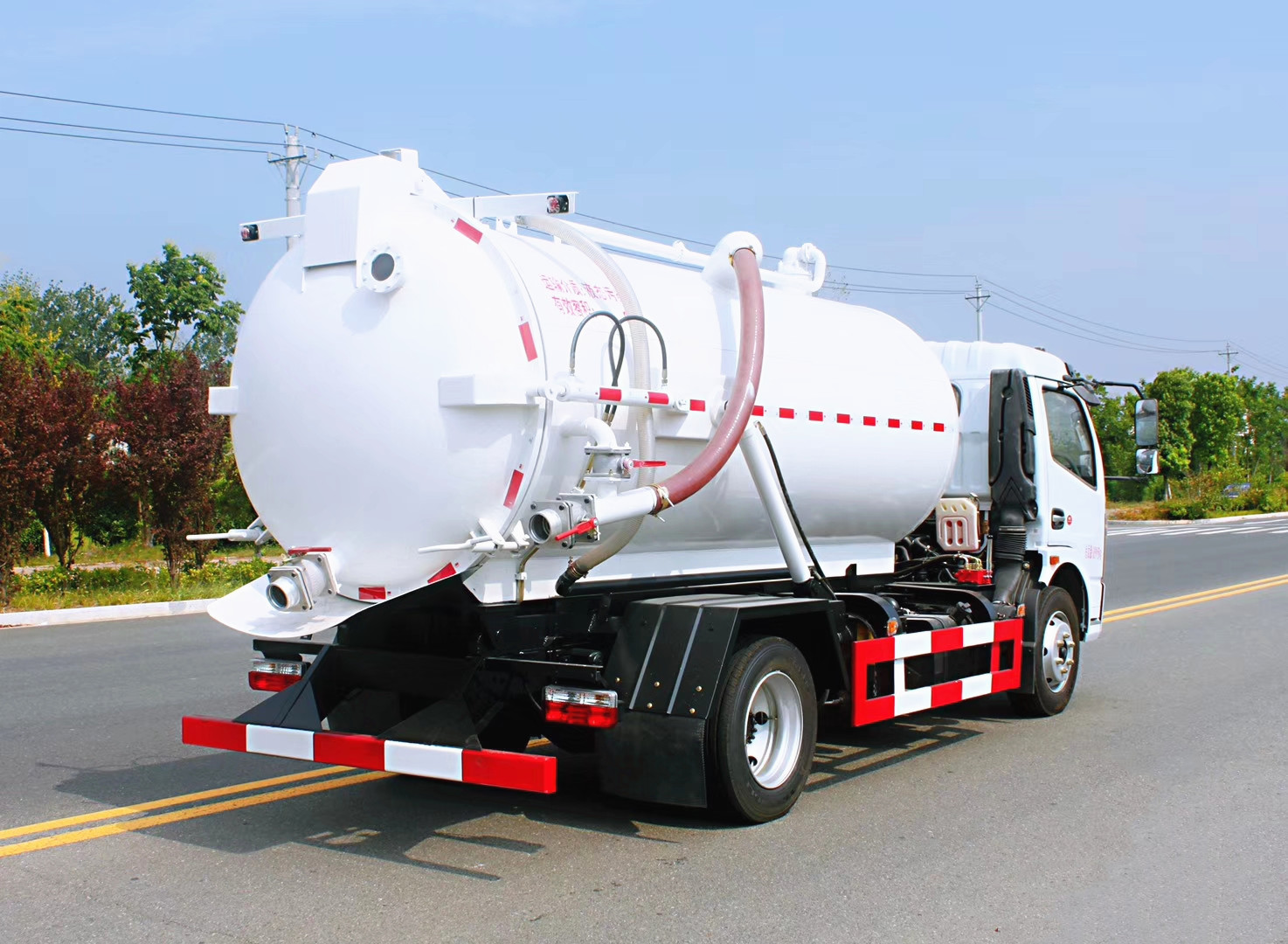東風多利卡吸污車罐體形狀為圓柱形,采用武鋼6mm厚優(yōu)質(zhì)碳鋼鋼板,罐體前部帶吸污窗,洗手裝置,舉升裝置,吸污管5米一根,罐體多種顏色選擇,其余按廠內(nèi)標準配置制作。隨車配置大功率真空吸污泵和優(yōu)質(zhì)液壓系統(tǒng),罐體封頭一次壓鑄成型、罐體可后開、雙頂自卸。罐內(nèi)污物可通過后蓋直接傾倒,具有真空度高(比吸糞車的吸力更大)、噸位大、效率高、用途更廣泛的特點。(垂直吸程:≥8 m,工作壓力:8500Pa,理論抽速:120L/S,軸功功率:≤13kw,進排氣口徑:50mm,抽滿罐時間:<5 min,排滿罐時間:<4min。吸污車采用大功率真空泵,一次壓鑄成型的封頭-,加厚的抗壓罐體,雙頂液壓系統(tǒng),是比吸糞車功能更強大的車型。