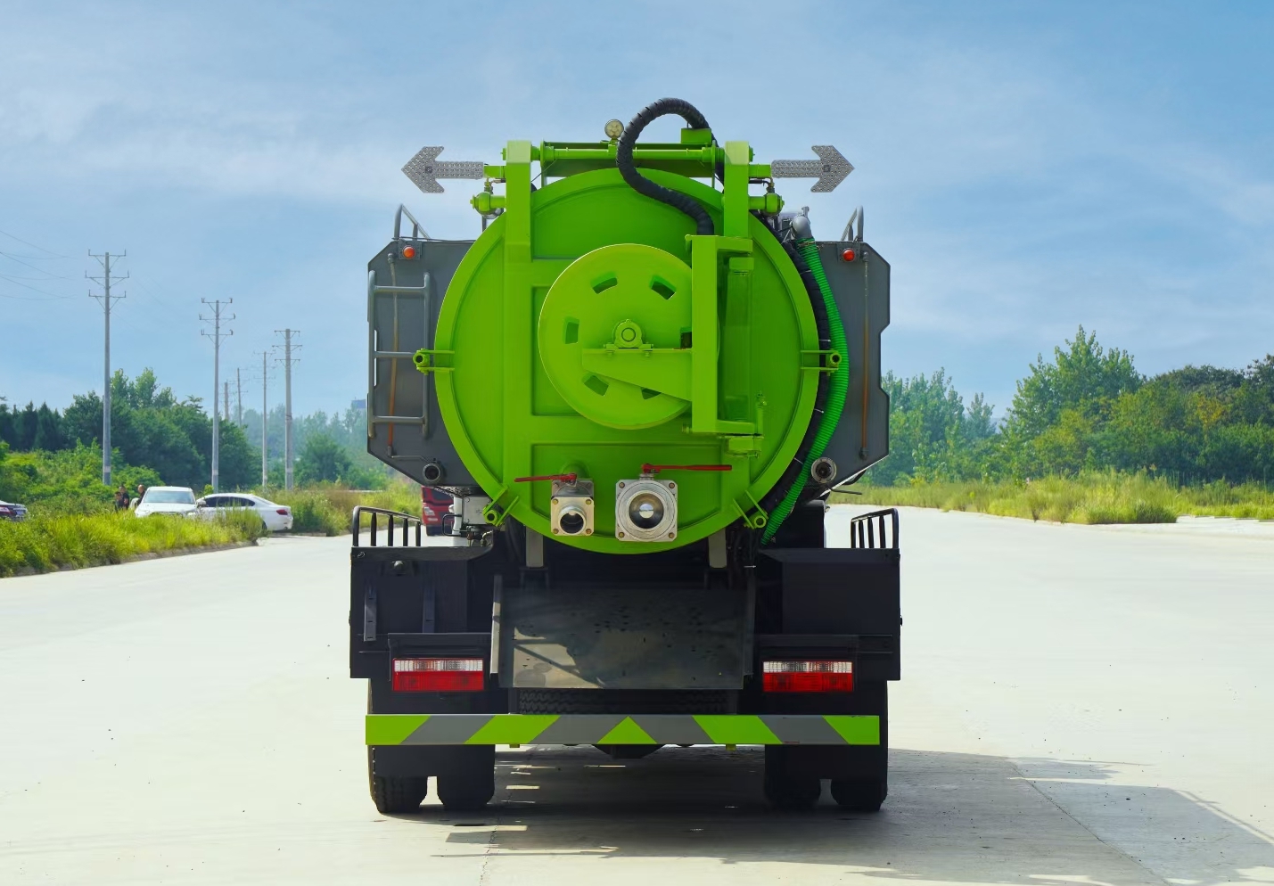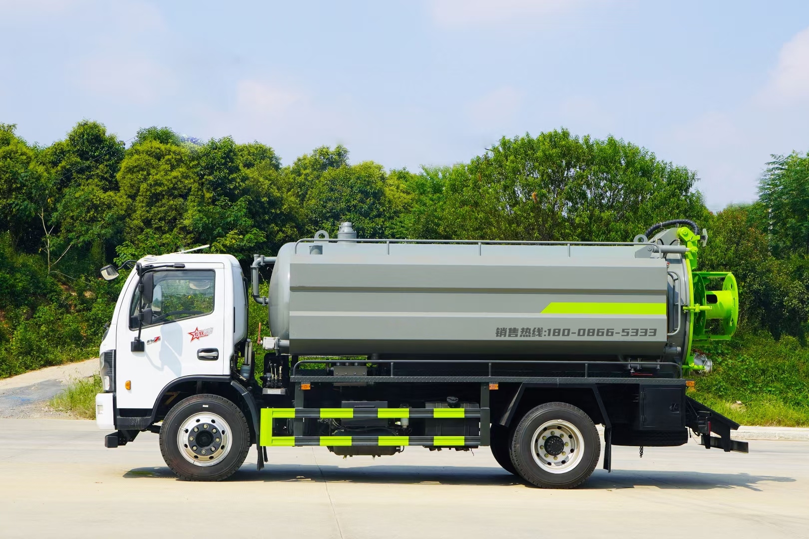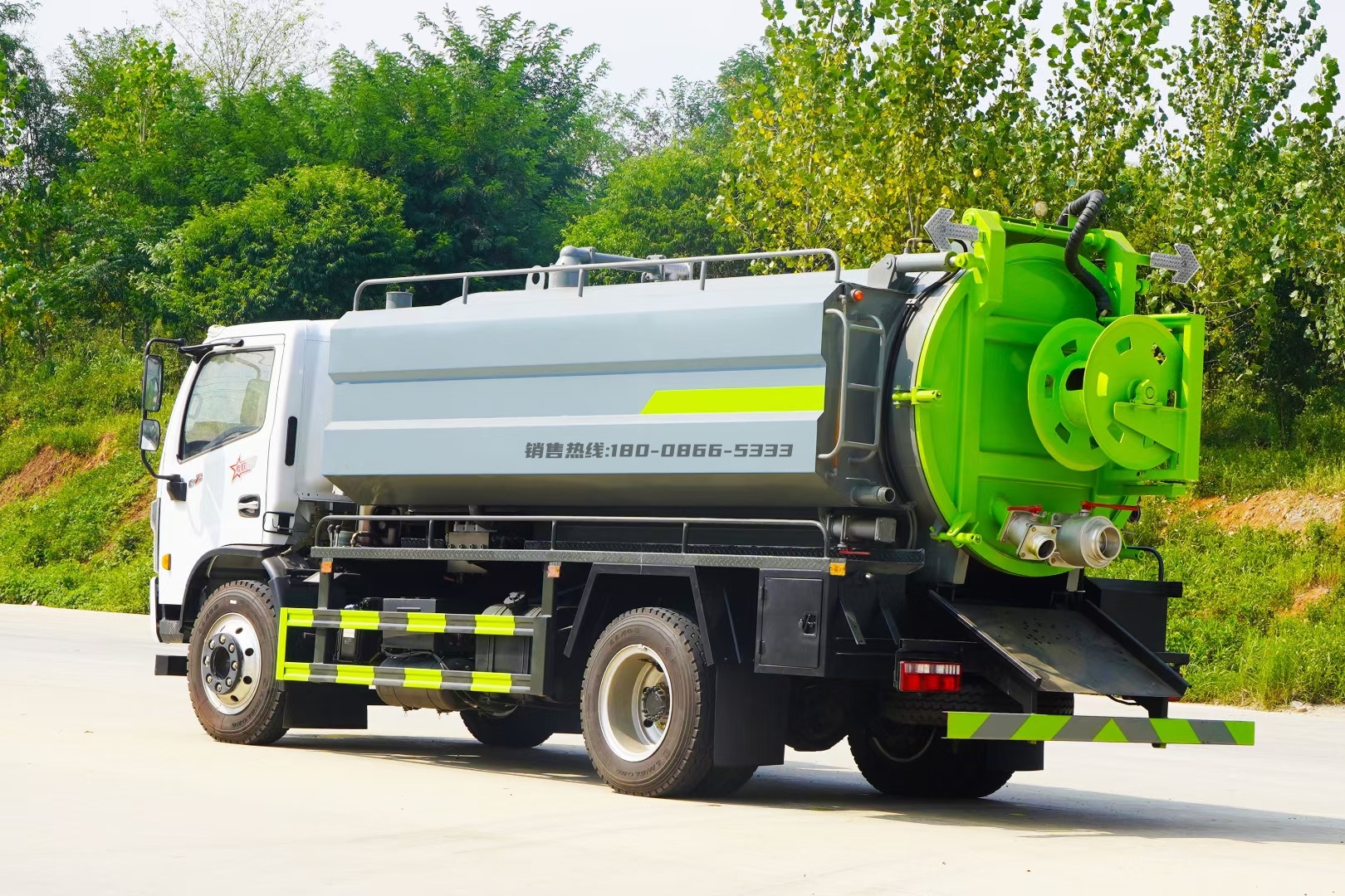 可加裝灑水裝置,安裝綠化灑水炮、前沖、后灑、側(cè)噴,可進(jìn)行綠化灑水、噴霧、壓塵、高壓沖洗路面,還可加裝吸污功能,集清洗、吸污于一體。