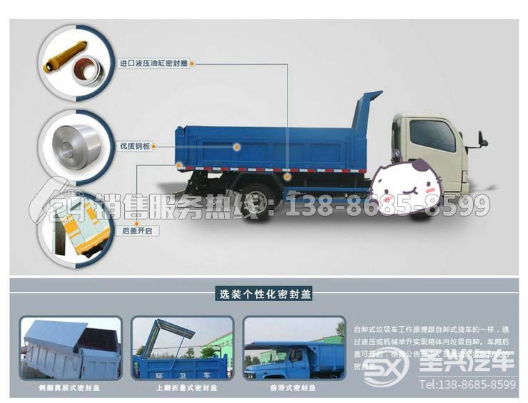 • 自卸垃圾車主要用于城市街道,學(xué)區(qū)垃圾收集,大型廠礦部門運(yùn)載各種垃圾,可運(yùn)輸灰,礦,石,土等散裝建筑材料,也可再礦山或煤礦中運(yùn)送礦石或煤,車廂為全密封式,上蓋翻式,上滑蓋式三種,貨廂自帶液壓密封蓋,控制十分方便,高效環(huán)保,整車?yán)眯矢摺?/p>