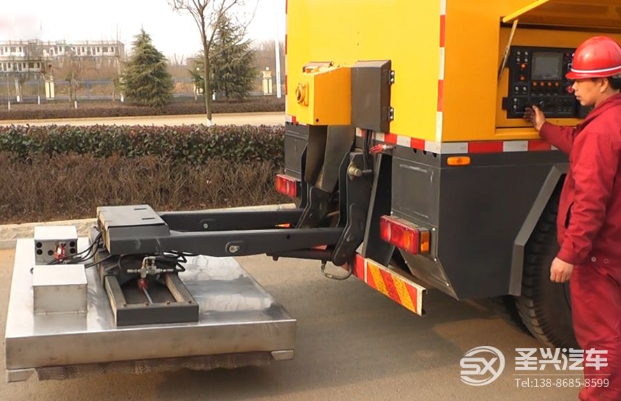 6、帶有專用LED施工照明燈,滿足在交通流量大的路段夜間施工的需要;配有LED安全警示燈,有效視距達到200米以上;方便夜間施工時可有效提醒來車注意避讓。