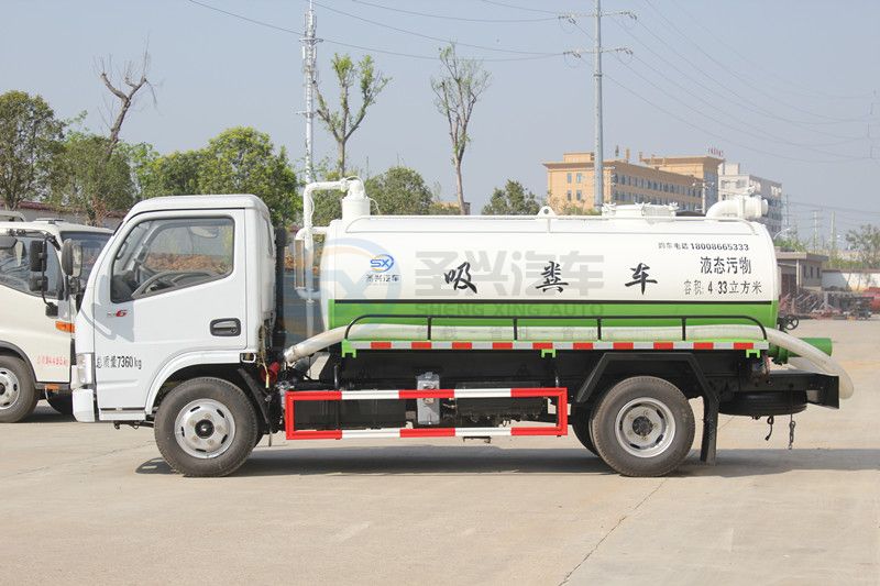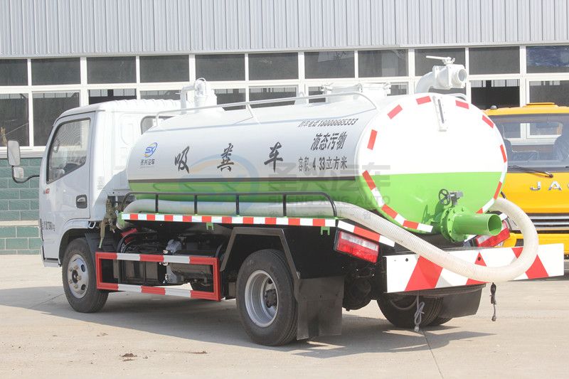 東風(fēng)多利卡5噸吸糞車罐體形狀為橢圓形,采用武鋼6mm厚優(yōu)質(zhì)碳鋼鋼板,罐體帶視糞窗,洗手裝置,舉升裝置,吸污管5米一根,罐體多種顏色選擇,其余按廠內(nèi)標(biāo)準(zhǔn)配置制作。隨車配置大功率真空泵和優(yōu)質(zhì)液壓系統(tǒng),罐體封頭一次壓鑄成型、罐體可后開(kāi)、雙頂自卸。罐內(nèi)污物可通過(guò)后蓋直接傾倒,具有真空度高、噸位大、效率高、用途更廣泛的特點(diǎn)。(垂直吸程:≥7 m,工作壓力:7000Pa,理論抽速:110L/S,進(jìn)排氣口徑:50mm,抽滿罐時(shí)間:<5 min,排滿罐時(shí)間:<4min。吸糞車采用大功率真空泵,一次壓鑄成型的封頭-,加厚的抗壓罐體,雙頂液壓系統(tǒng),。
