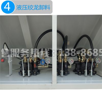 4.選裝液壓絞龍卸料,使用自身動力驅(qū)動,不需要外接電源,卸料時對場地無要求限制。