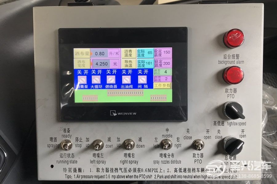 •   瀝青灑布車是一種專業(yè)灑布乳化瀝青、稀釋瀝青、熱瀝青、高粘度改性等瀝青的智能化自動(dòng)化高科技產(chǎn)品。用于修筑高等級(jí)公路瀝青路面底層的透層油、防水層、粘結(jié)層的灑布。該灑布車由汽車底盤、瀝青罐體、瀝青泵送及噴灑系統(tǒng)、導(dǎo)熱油加熱系統(tǒng)、液壓系統(tǒng)、燃燒系統(tǒng)、控制系統(tǒng)、氣動(dòng)系統(tǒng)、操作平臺(tái)構(gòu)成??蓮V泛應(yīng)用于公路、城市道路、機(jī)場(chǎng)、港口碼頭和水庫(kù)等路面施工;大容量的瀝青灑布車也可作為瀝青運(yùn)載工具,主要用于瀝青貫入法表面處治、透層、粘層、混合料就地拌和、瀝青穩(wěn)定土等施工和養(yǎng)護(hù)工程。